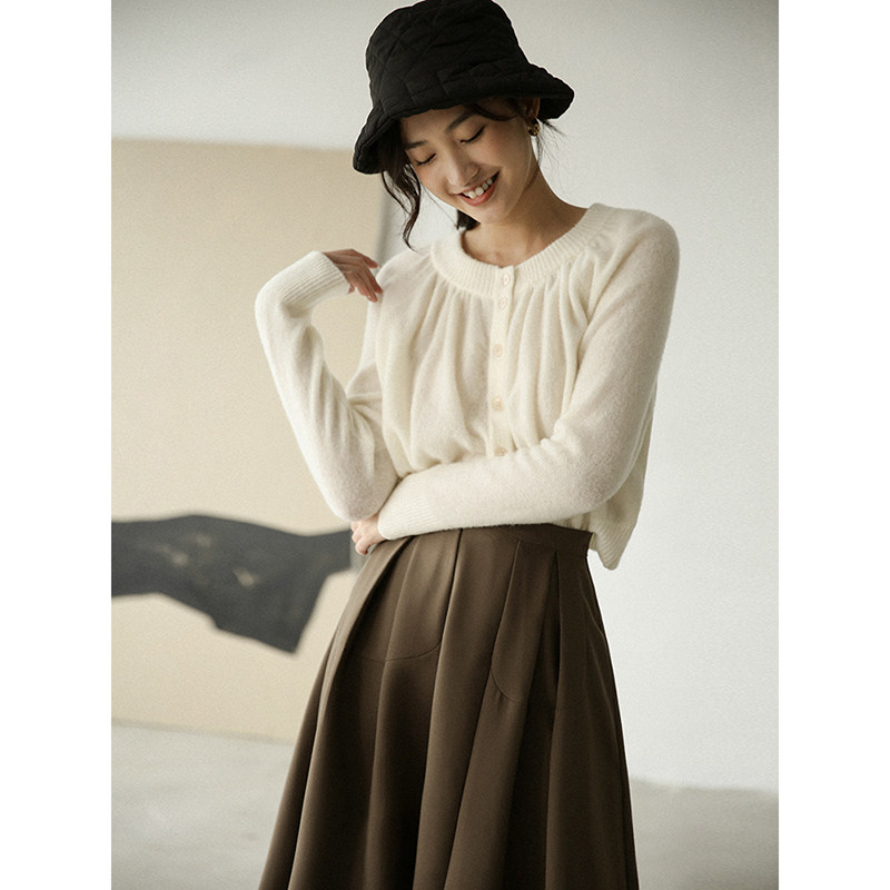 Ou Ke Rui pure feeling alpaca ~ gentle and lazy wind knitted cardigan loose short sweater coat women's winter
