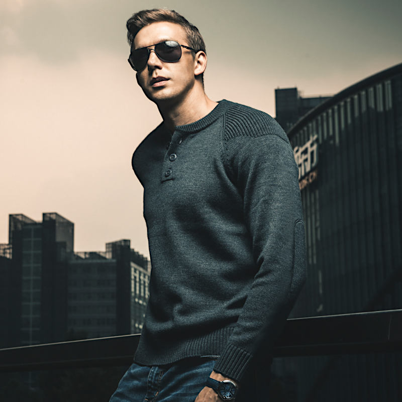 Dragon's Tooth Fall/Winter 2020 New Pure Wool Hidden Scale Merino Wool Henry Collar Pullover Sweater Men Merino