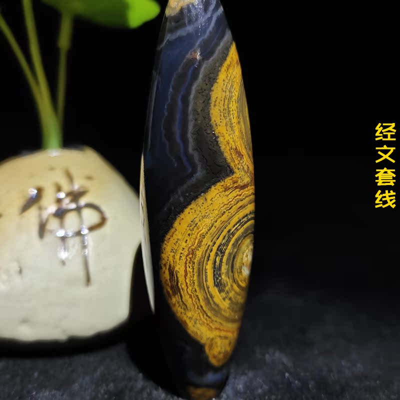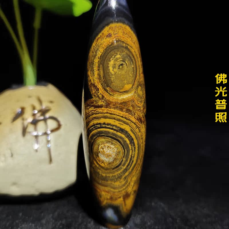 Buddha statue totem two eyes covered with dzi bead nine eye shale boutique scripture eye ring set line chalcedony bottom nine eye stone shale