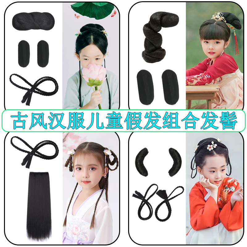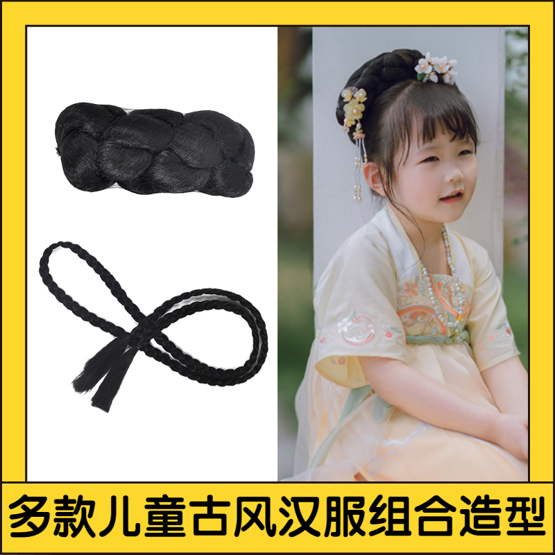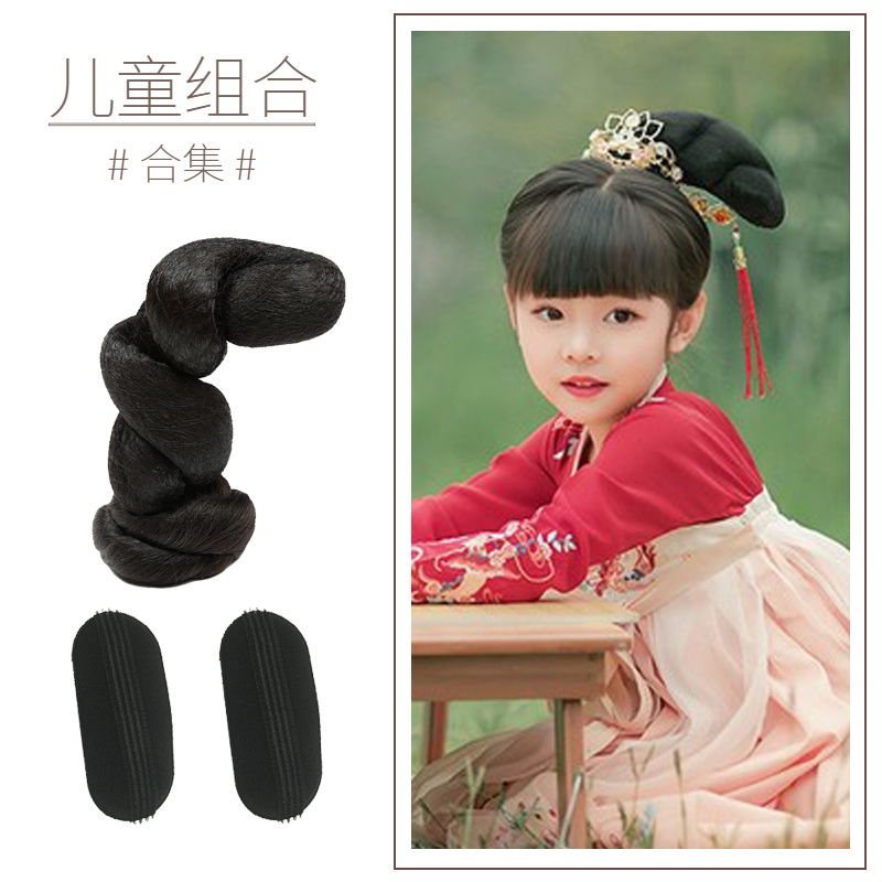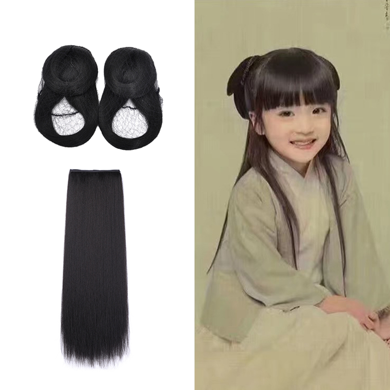 Costume wig children's ancient style Hanfu cos style hair bun girl ancient hairstyle horn hair bag disc hair braid