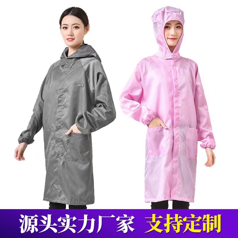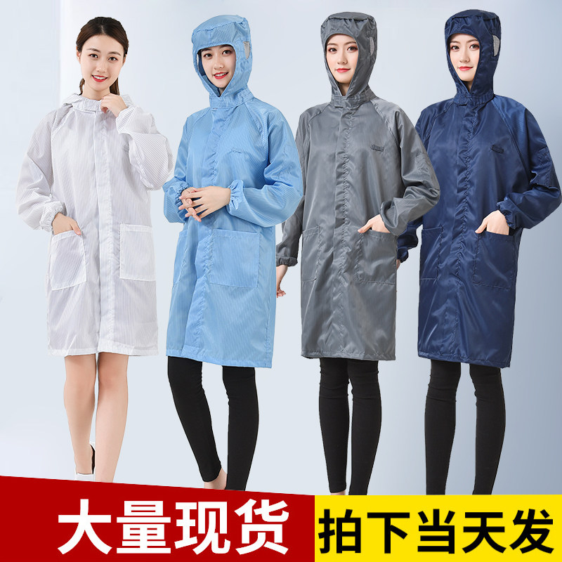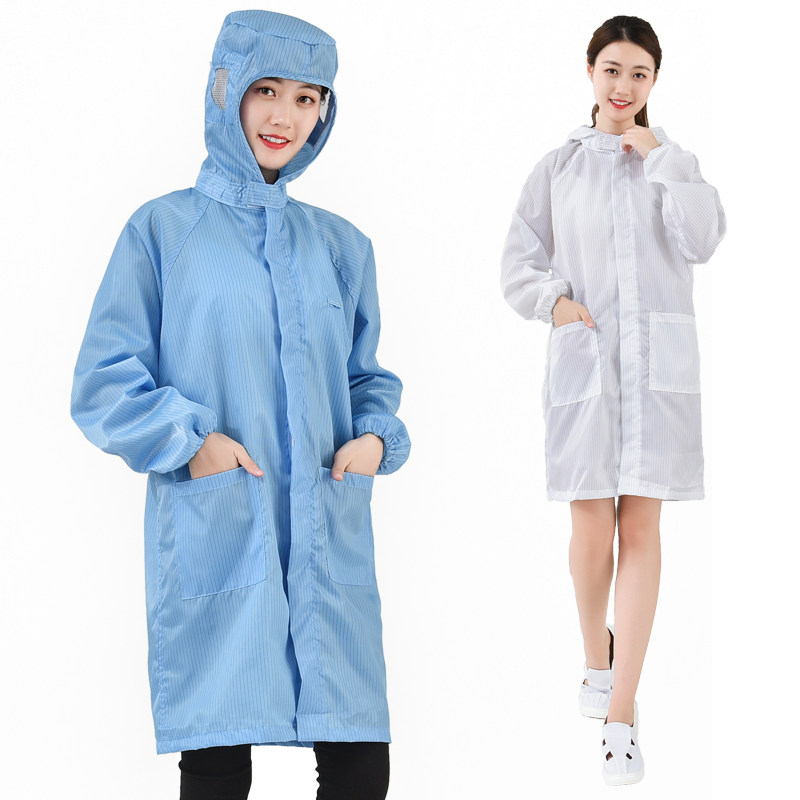 Anti-static hooded coat, long dustproof clothing, hooded protective clothing, white, blue, gray, navy blue, rewashable