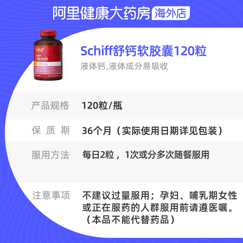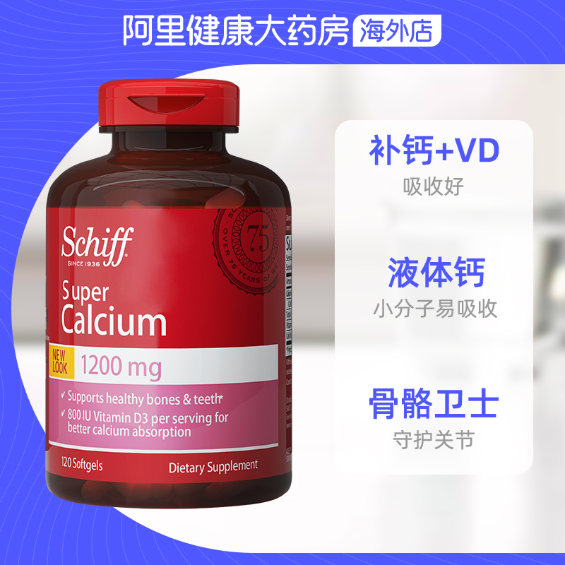 Schiff shucalcium soft capsule liquid body calcium 1200mg Vitamin D calcium tablet calcium carbonate in aged 120 grain * 2