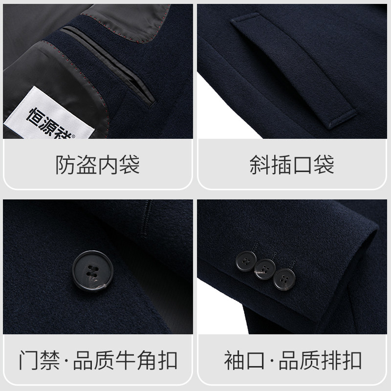 Hengyuan Xiang pure cashmere plush woolen sweater male mid-length winter turd collar middle-aged warm business casual subcoat