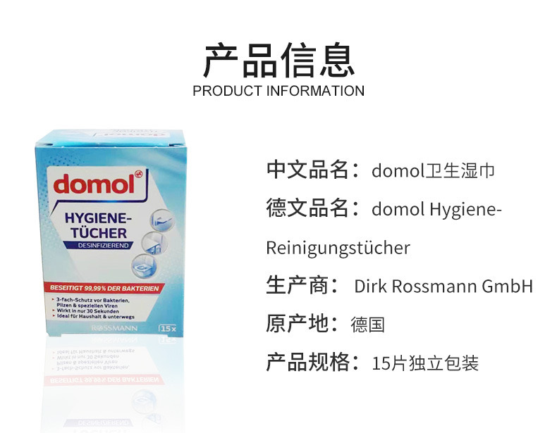German domol multipurpose disinfection wet towels Children available free of wash-hand degeria disinfection 15 sheets of independent packaging