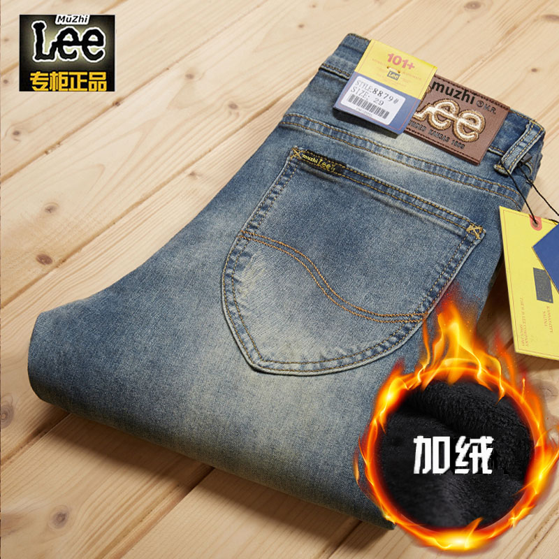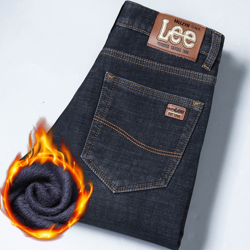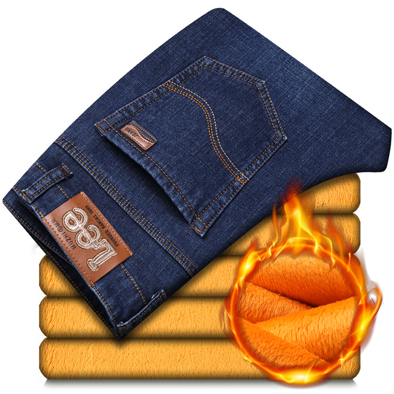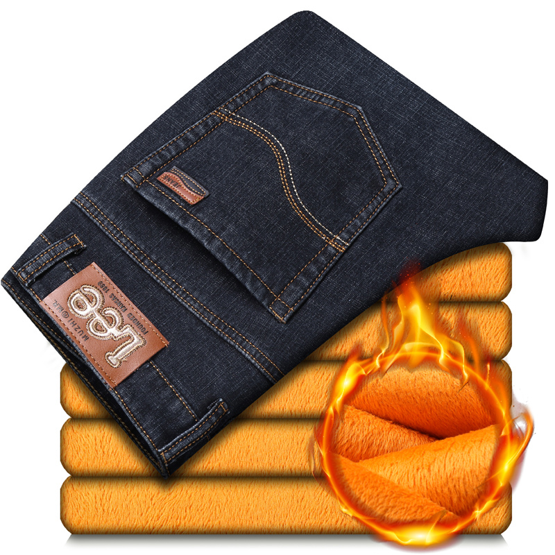 Winter gush thickened Jeans Men's High End Business Plus Suede Outside Wearing Body Warm Loose Straight Drum