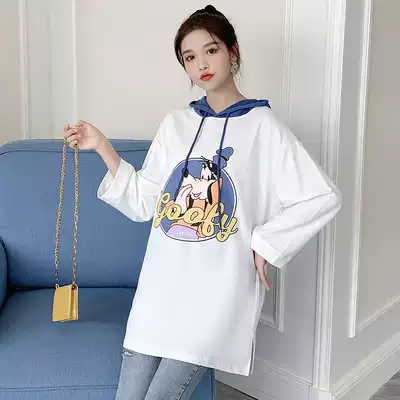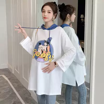 Fat plus size 200kg maternity wear autumn fashion long sleeve hooded T-shirt fat MM loose slim suit trend