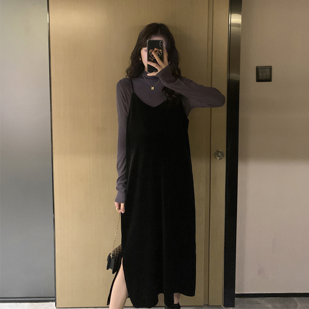 Pregnancy woman dress Spring autumn hanging band dress Two sets Korean version loose small fragrant wind elastic going out of fashion Chaoma Foreign Pie Suit