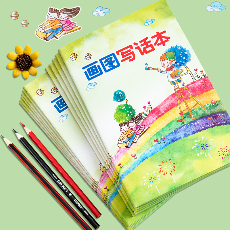 Pupils in grade two draw picture write words book grade three children draw diary book sub field character grid thickened lovely cartoon A5 creative kindergarten students while drawing while writing diary
