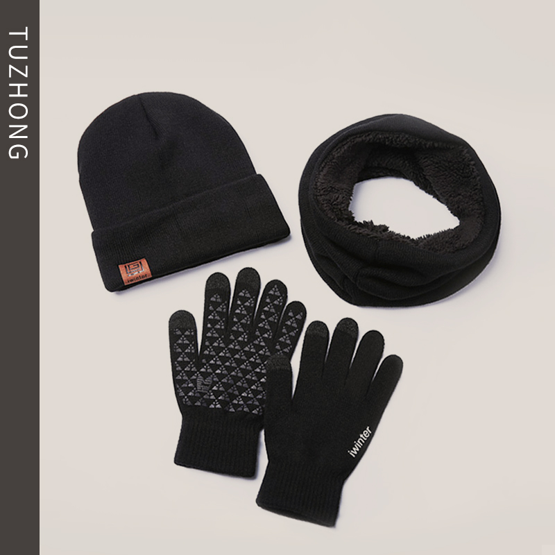 2023 new men and women gloves plus velvet thick riding anti-cold and warm three sets Mao line hat lovers student scarf-Taobao