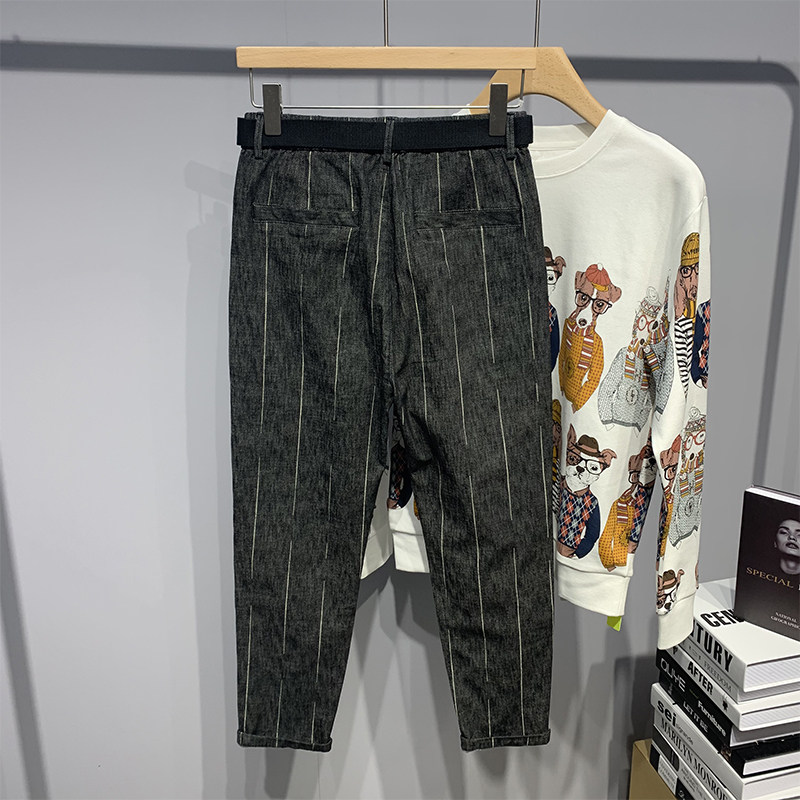 Autumn Nets Red Striped Casual Pants Men Loose small footed Harlan pants Day Retro Tide Cards 100 Lap Nine Pants