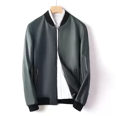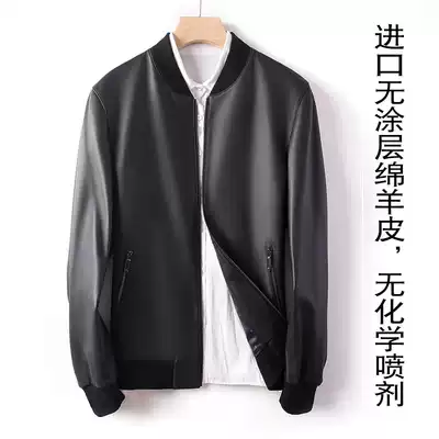 Uncoated Sheepskin Haining leather men men's baseball collar leather jacket men's cotton coat
