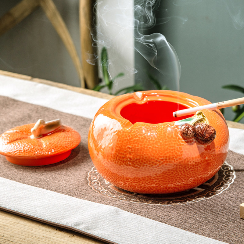 Orange (big Italian) cigarette ash tray with lid white (vegetarian net) Ashtray {Sending Pendant} Orange (Dozier Pomegranate) With Lid Smoked Orange Peel Orange (Persimmon Ruyi) Ashtray Trumpet