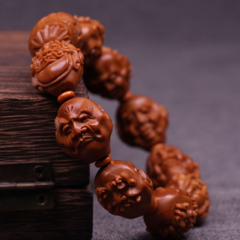 Sugong Nangong olive core carving bracelet 2 0 iron core pure handmade must send double-sided eighteen arhat men's text play