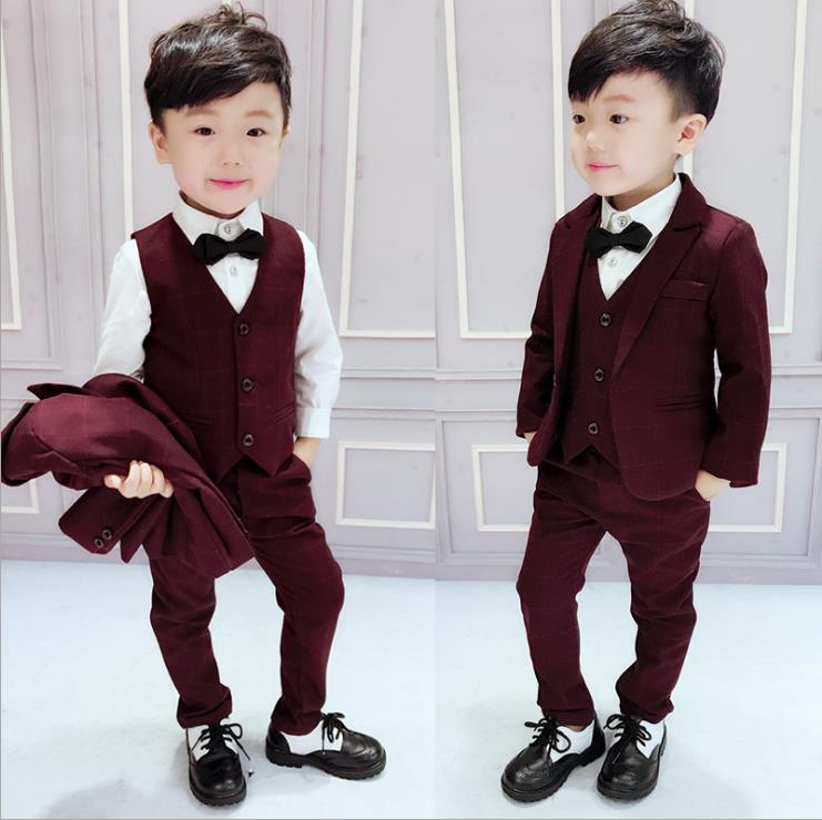 2 boy gown Inleng plaid small suit 3 Children Western suit Three sets 5 Fall 4-year-old baby 7 Playboy suit 6