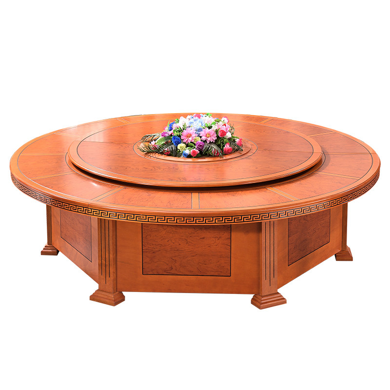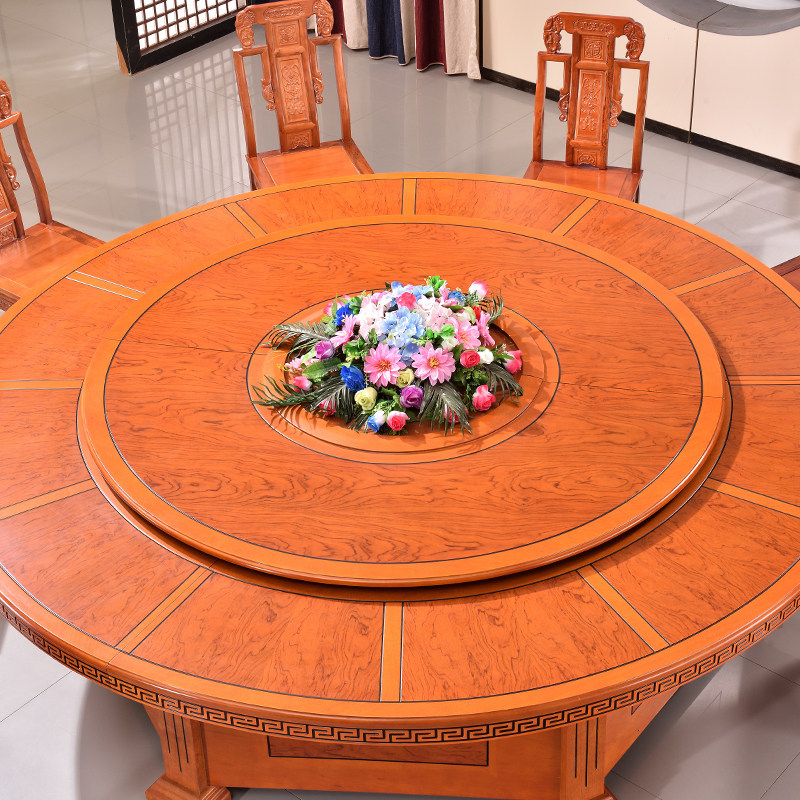 Hotel electric turntable table hot pot round table drilling table top 16 people hotel banquet household large table 2 2m