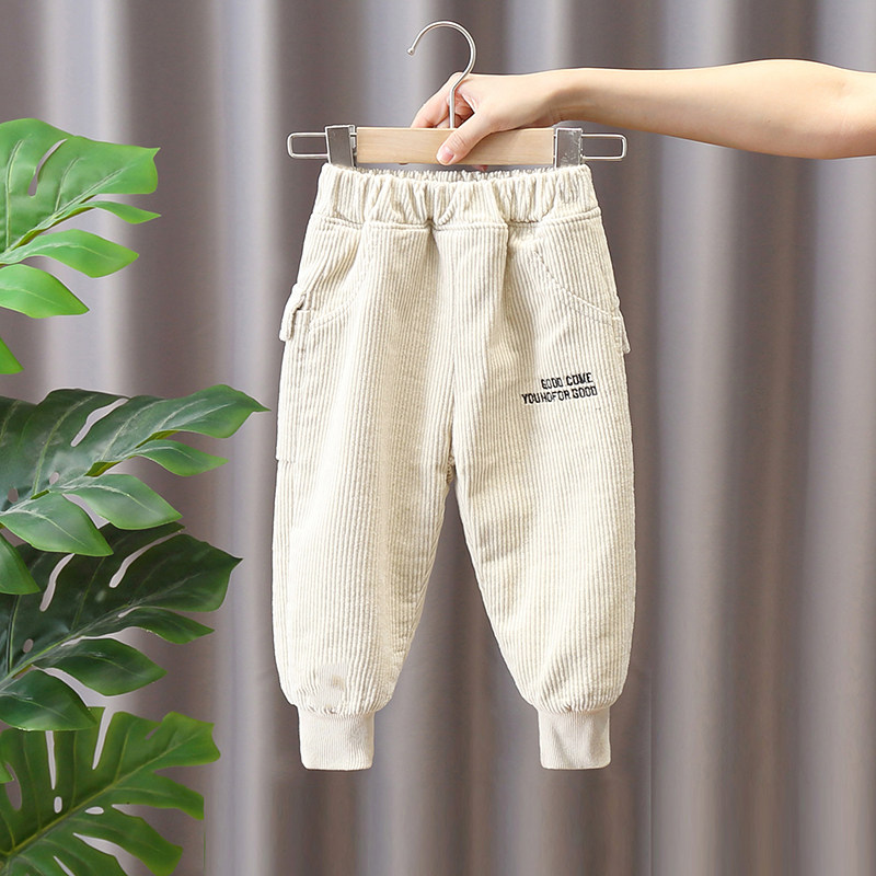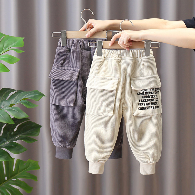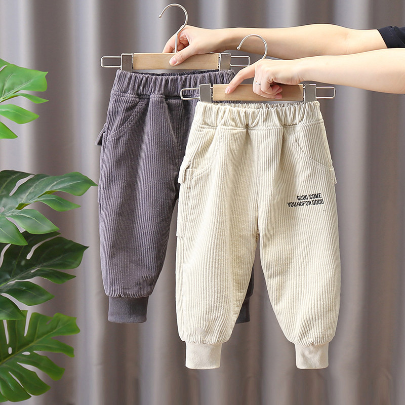 Boy Garsuede pants Children fall winter clothing Children's wick suede pants thickened Male baby Winter warm cotton pants outwear