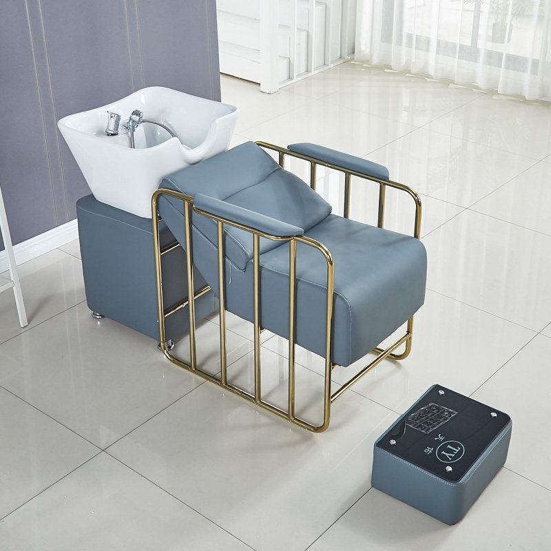 Net Redness shop Hair Wash Head Bed Hair Salon Special Shampoo Bed Gilded Stainless Steel Flush Bed Ceramic Basin Beauty Salon