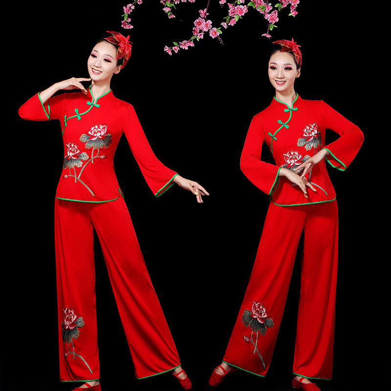 Yangge costume new set female middle-aged and elderly plus size 2020 waist drum team fan dance twist Yangge Jiaozhou northeast