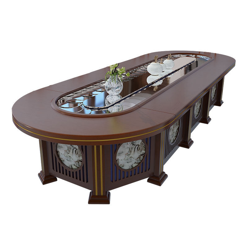 Hotel electric dining table Large oval table Rectangular hotel long table Rotary conveyor belt Hot pot table Banquet table for 20 people