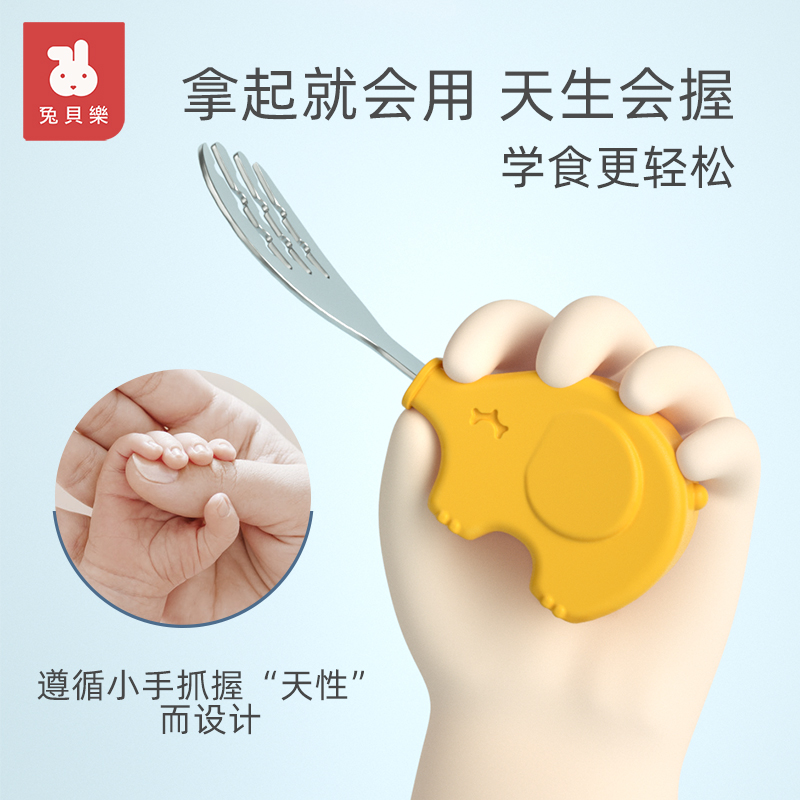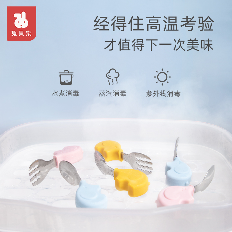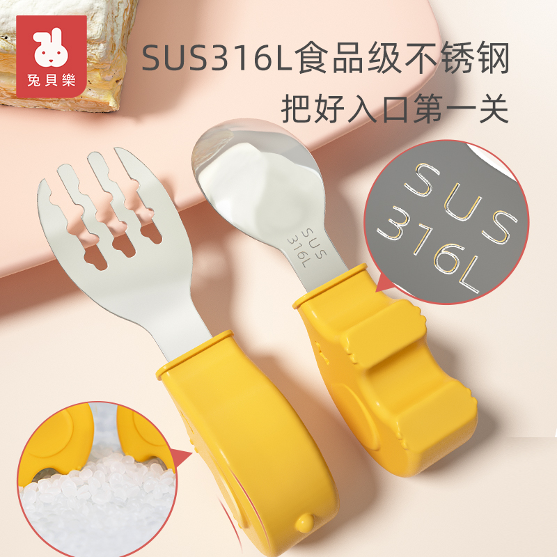 (Champagne powder) baby elephant fork spoon (food grade 316L material)