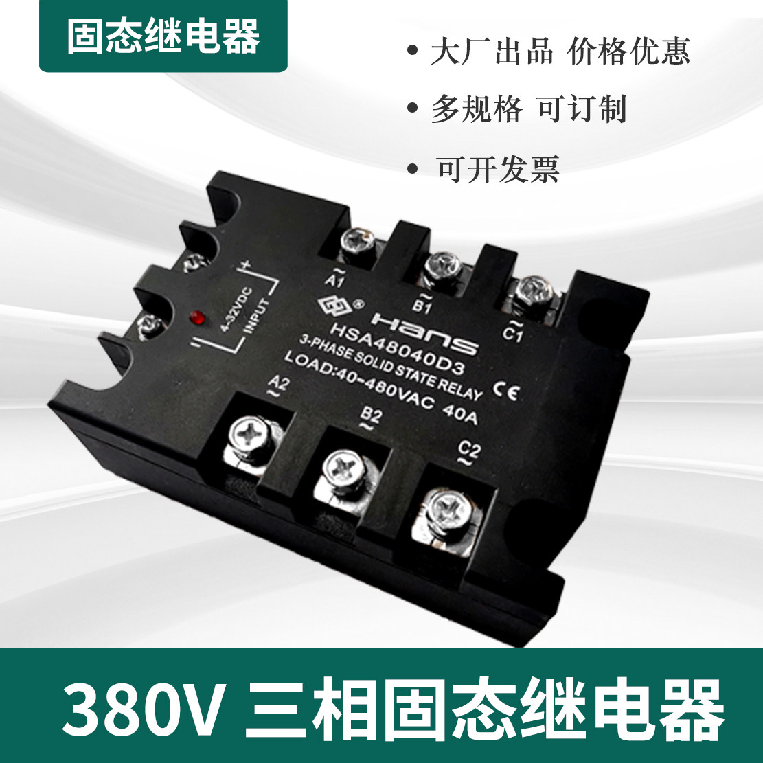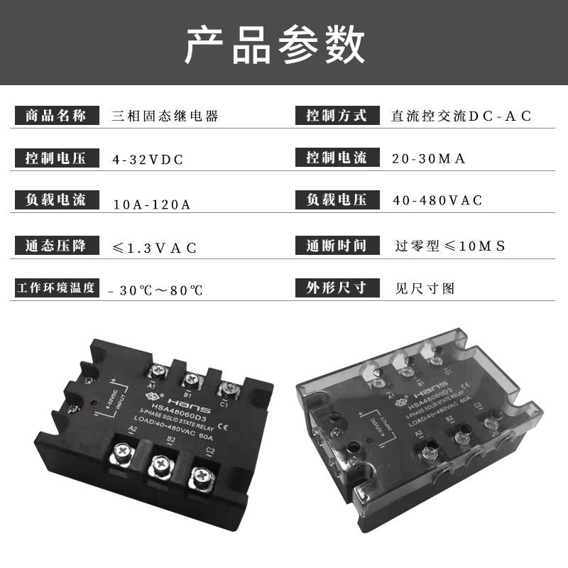 Three-phase solid state relay 100A 120A DC controlled AC HSA48040D3380vSSR replaceable contactor