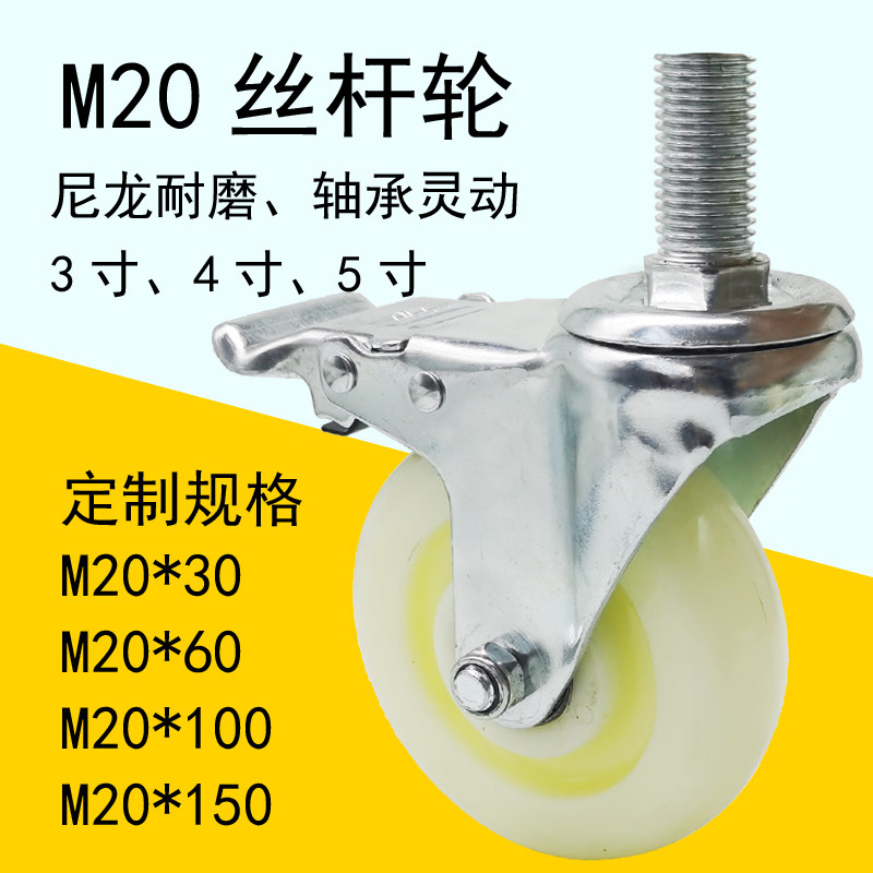 M20 extended screw universal wheel honey snow ice city operation table special wheel outdoor nylon wear-resistant mechanical caster wheel