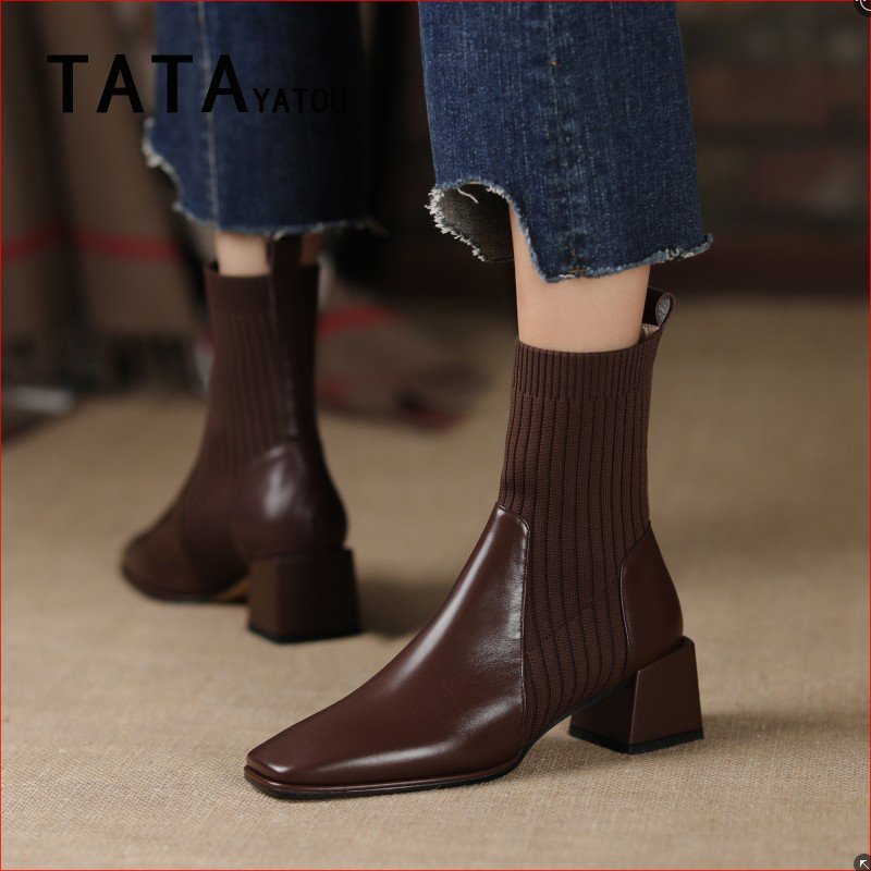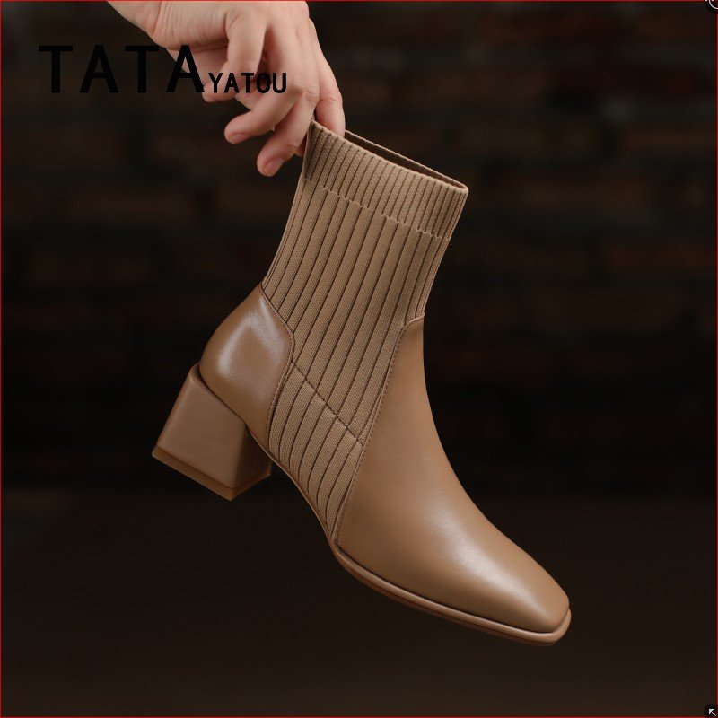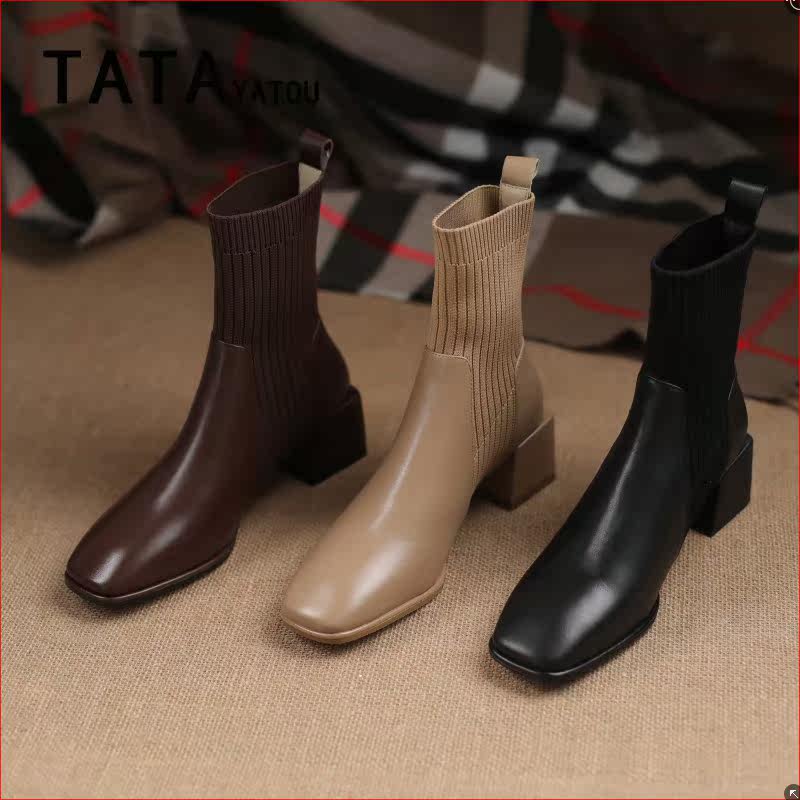 TATA YATOU He her girl shoes Sox boots female short boots Socks Boots Woman Retro Coarse Heel Skinny Boots Martin boots