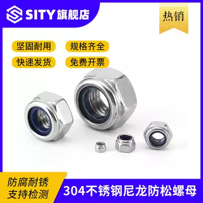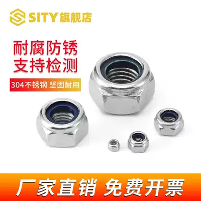 304 316 stainless steel nylon lock nut American locking self-locking non-slip fine teeth reverse hexagon screw cap