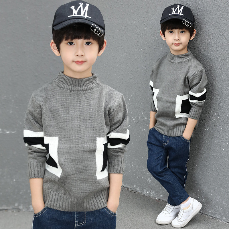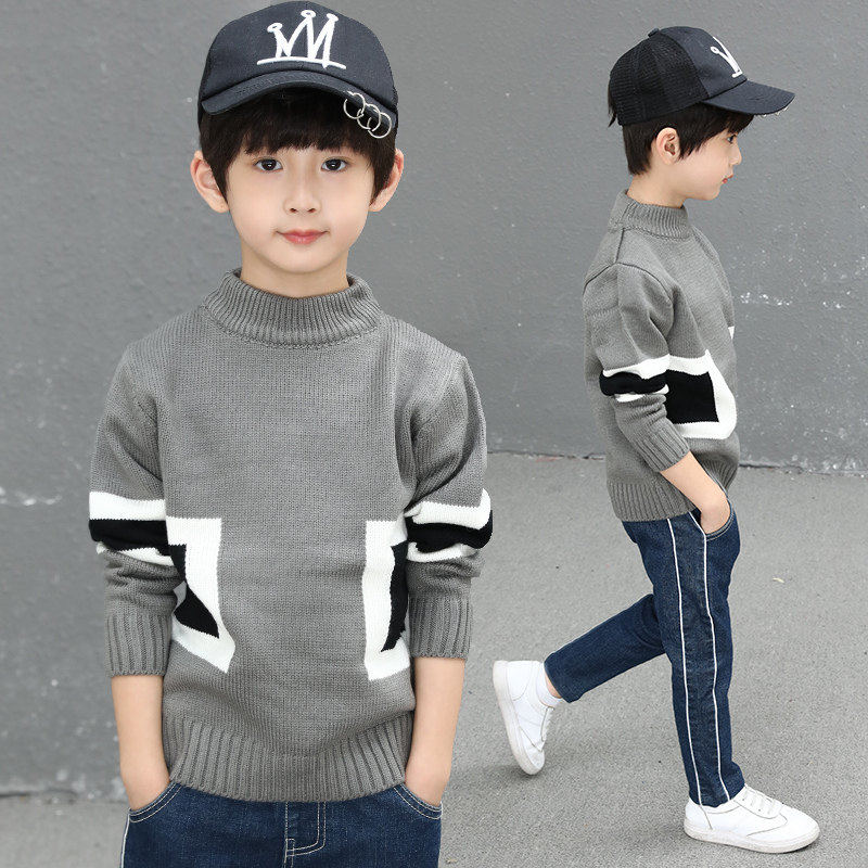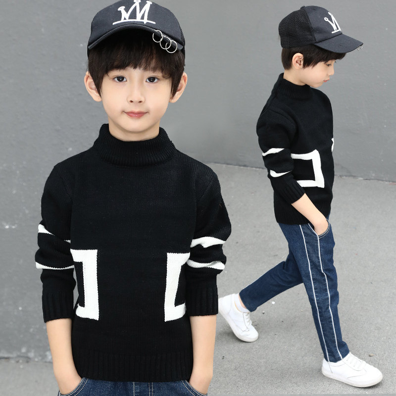 Boy sweater plus thickened knitting spring and autumn to bottom boy 2023 new children in the spring coat