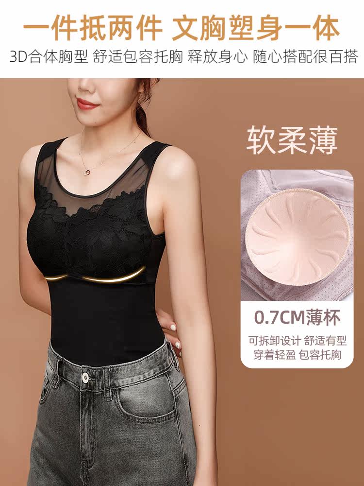 Autumn and winter self-cultivation body-shaping bottoming top sleeveless no-wear bra no steel ring with chest pad women's warm vest all-match