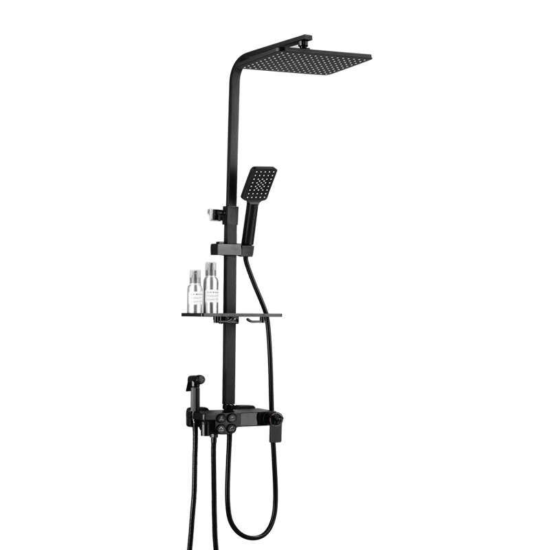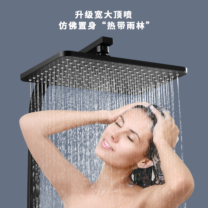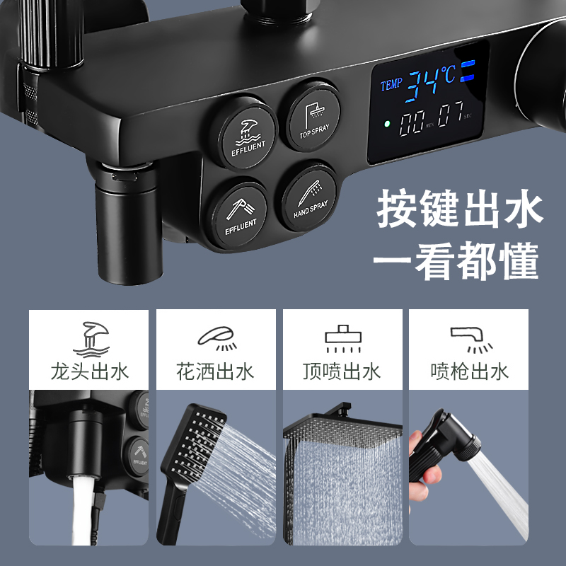 German quality brand A-3003 full copper constant temperature digital display shower shower set black square bath tub faucet