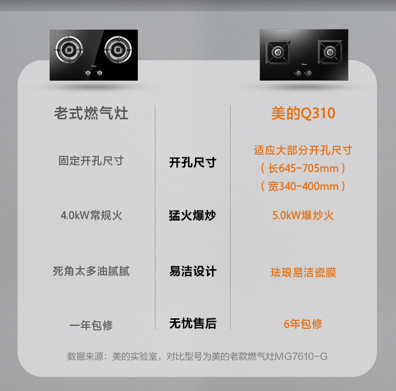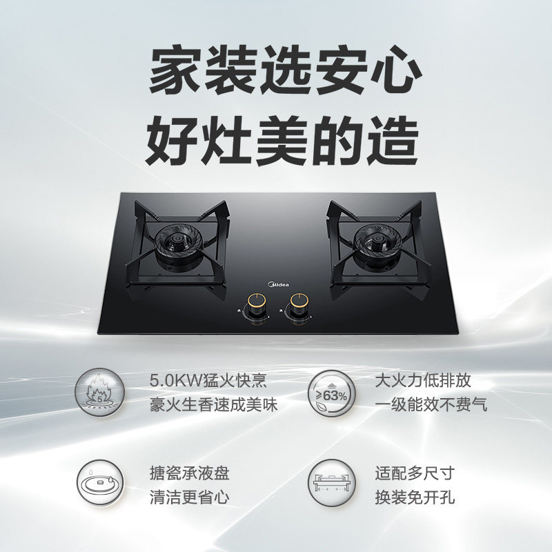 Midea Q310 gas stove Gas stove double mouth gas stove Household 50KW Menghu stove desktop embedded gas stove