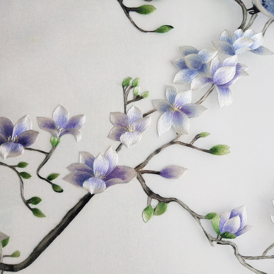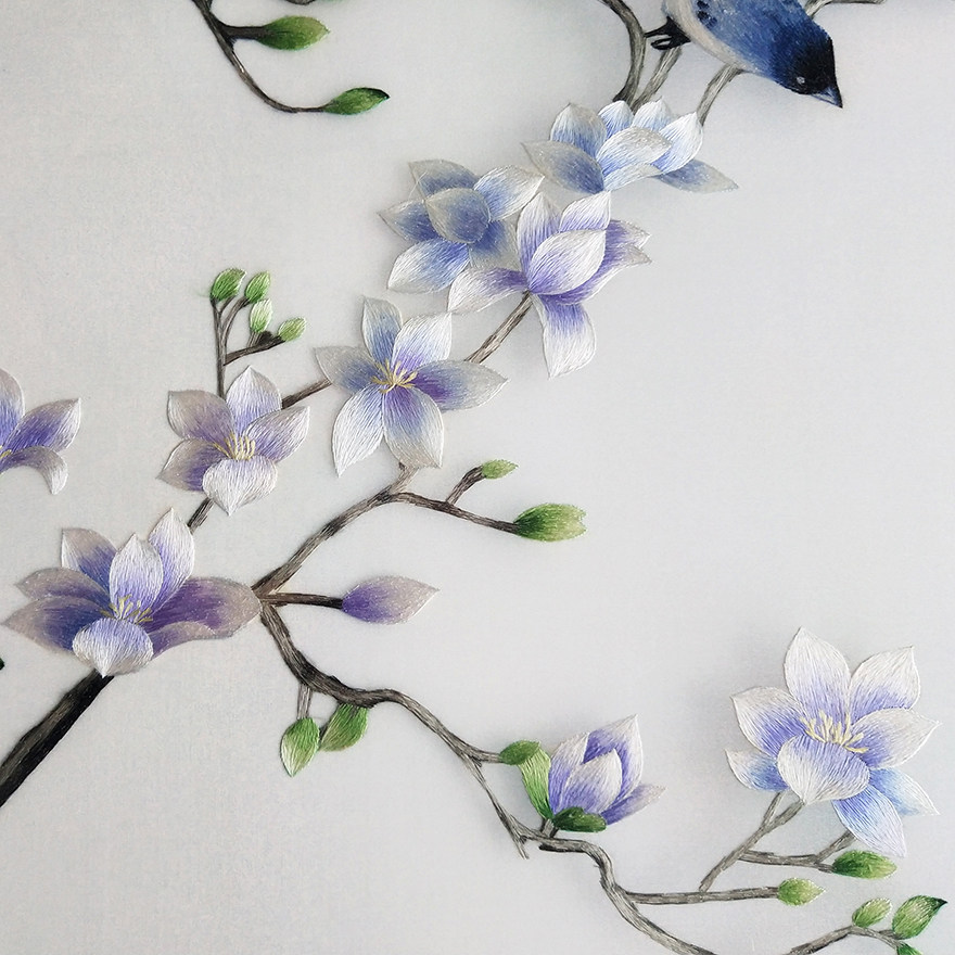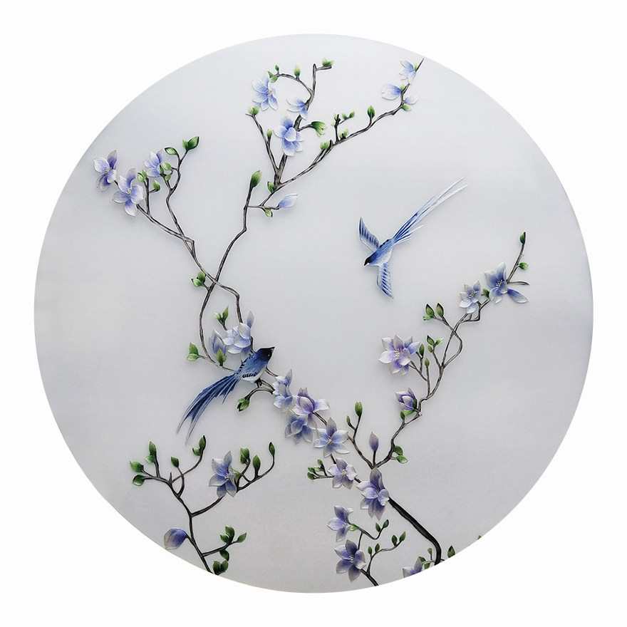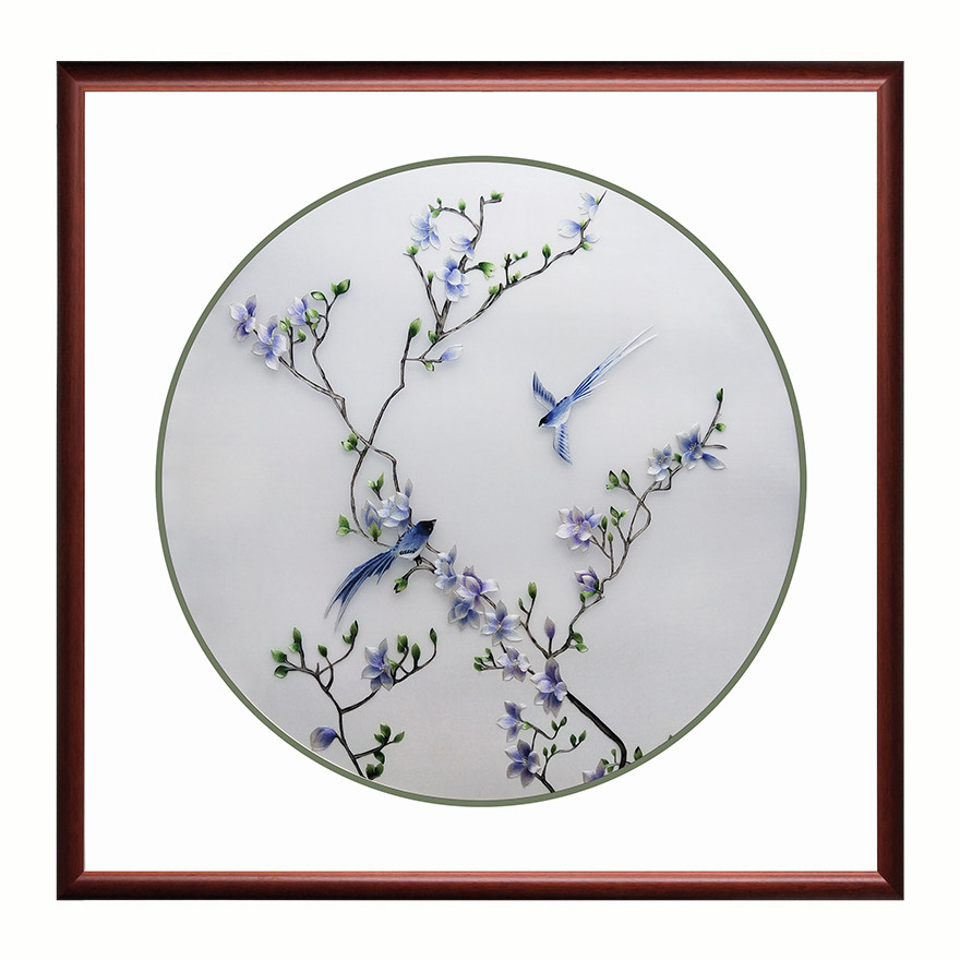Ingenious Su Embroidery "Yulan Twin Birds" Home Decoration Hanging Picture Embroidered Silk