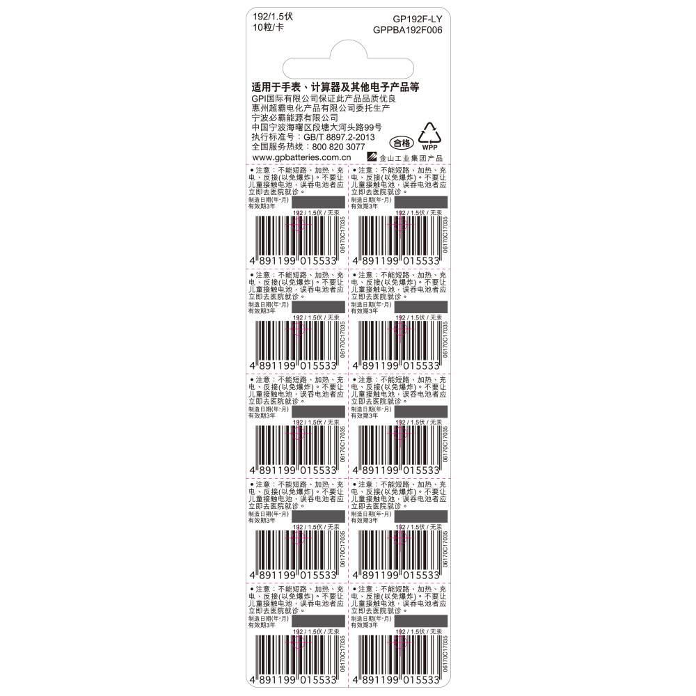 GP Speedmaster 192 Button Alkaline Batteries 10pcs Tear-off Card Pack