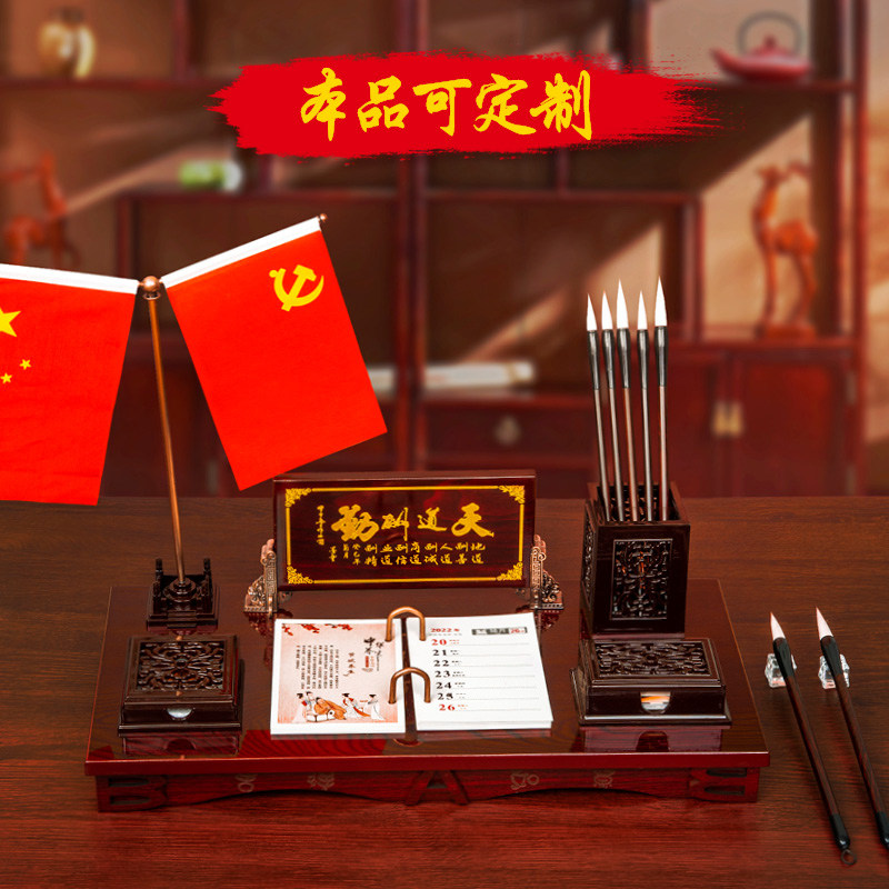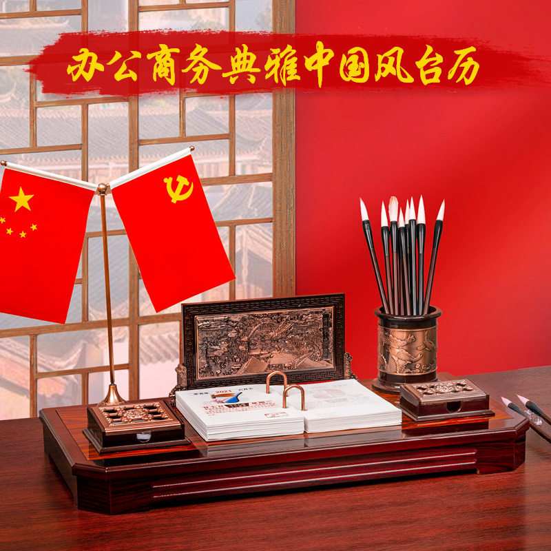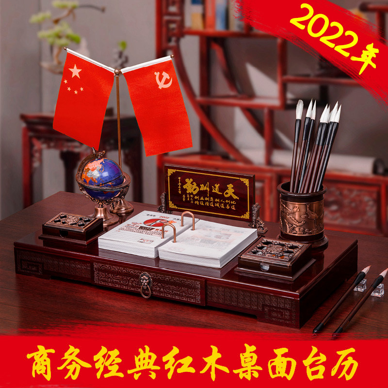 2022 desk calendar wall calendar can be customized boss desktop 2021 creative business office work Chinese style pen holder imitation mahogany logo enterprise wood small ornament note simple calendar printing