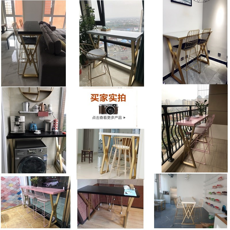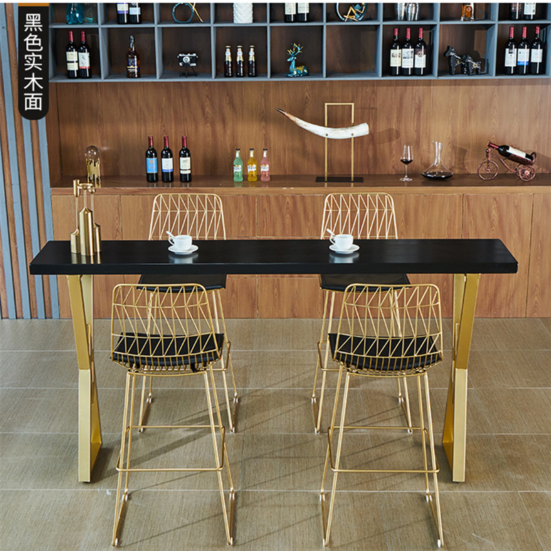 Nordic Light Extravagant Solid Wood Bar Table Tennis Table Tennis Red Iron Art Home Milk Tea Bar Marble Dining Table And Chairs High Foot Long Strip Table