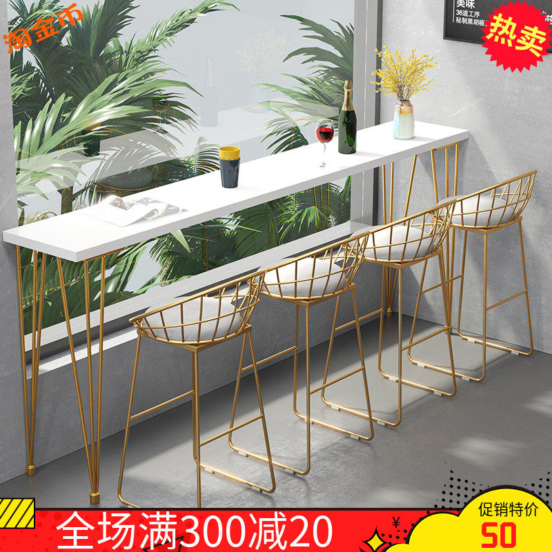 Nordic marble bar table home partition high table solid wood iron long strip milk tea coffee shop table and chair combination