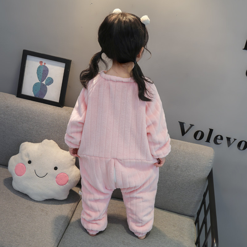 Baby coral suede even body pyjamas children autumn and winter gush flannel flannel climb Thickened Sleeping Bag Girl's home clothes