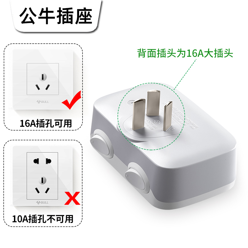 Bull 16-an air-conditioning socket converter 16a to 10a high-power one-to-two dedicated water heater three-hole plug