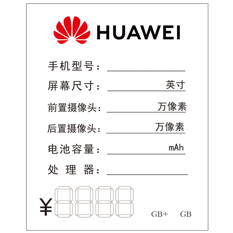 Large Huawei mobile phone price tag Daquan general display price 15X12 glory 5G price tag paper