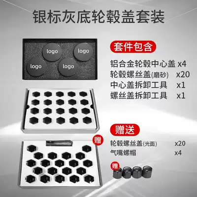 Grey silver standard center cover set black background silver standard center cover set black background red label center cover set silver bottom red label center cover set hub cap storage bag tips