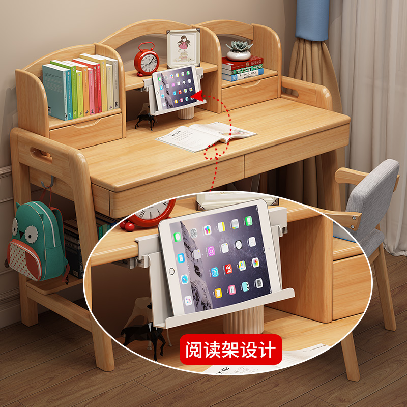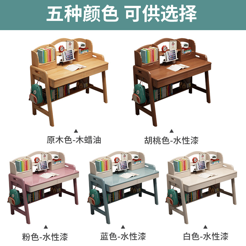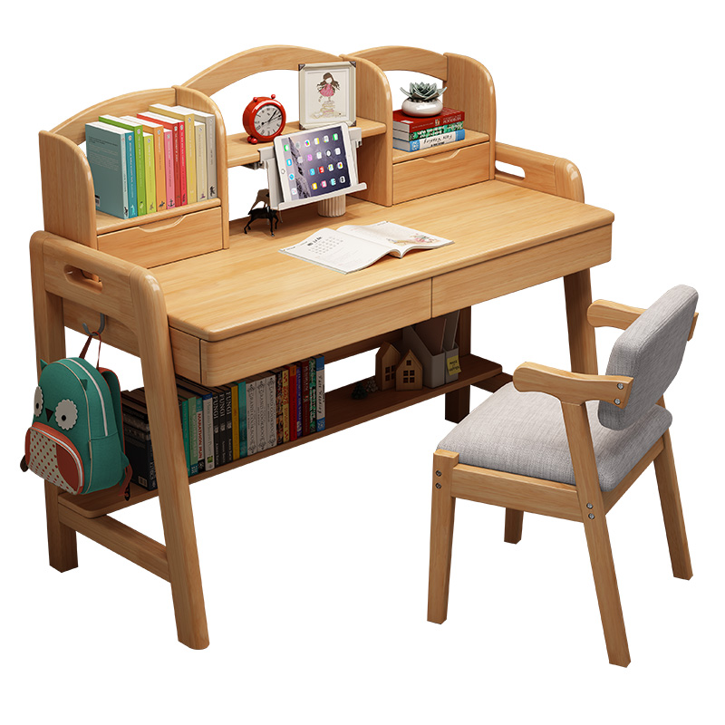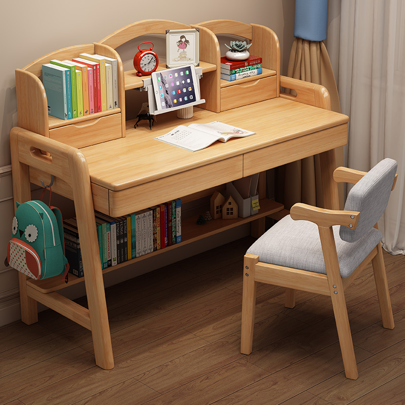 Solid Wood Desk Bookshelf Integrated Elementary School Student Desk Chair Set Of Children Home Bedroom Learning Desk Multifunction