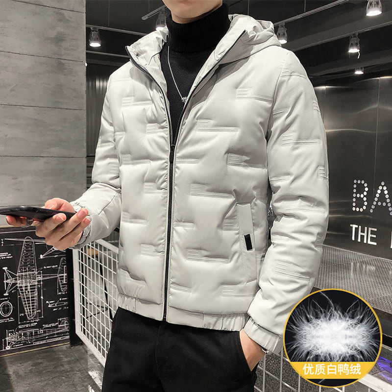 2020 new light and thin short version down clothes men Winter Korean version Trend handsome and white duck suede Even cap jacket Male