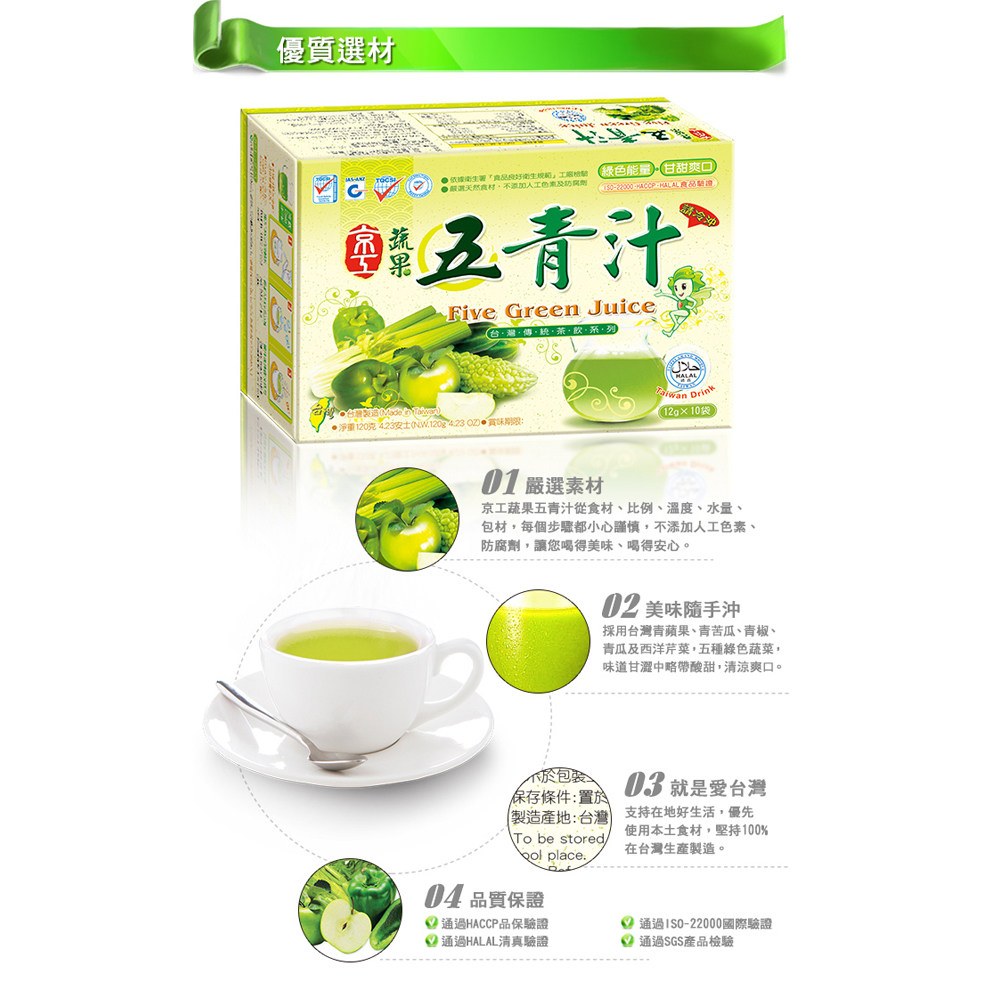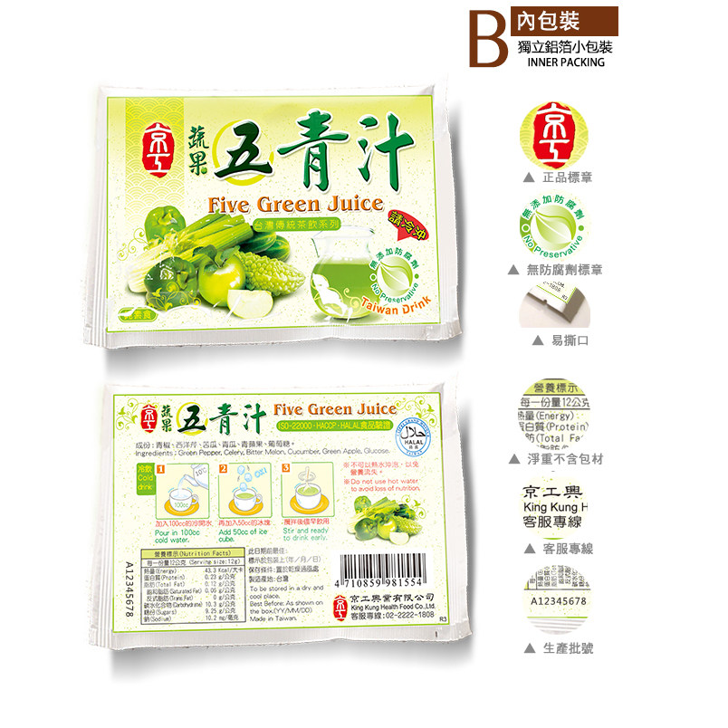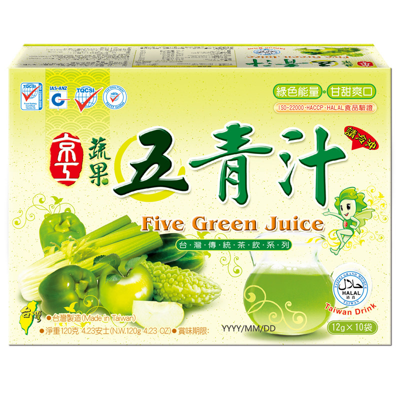 China Taiwan Jinggong Vegetables and Fruits Five Green Juice Powder Vegetable Juice Imported Fruit and Vegetable Powder Small Sachets 10 Bags Instant Instant