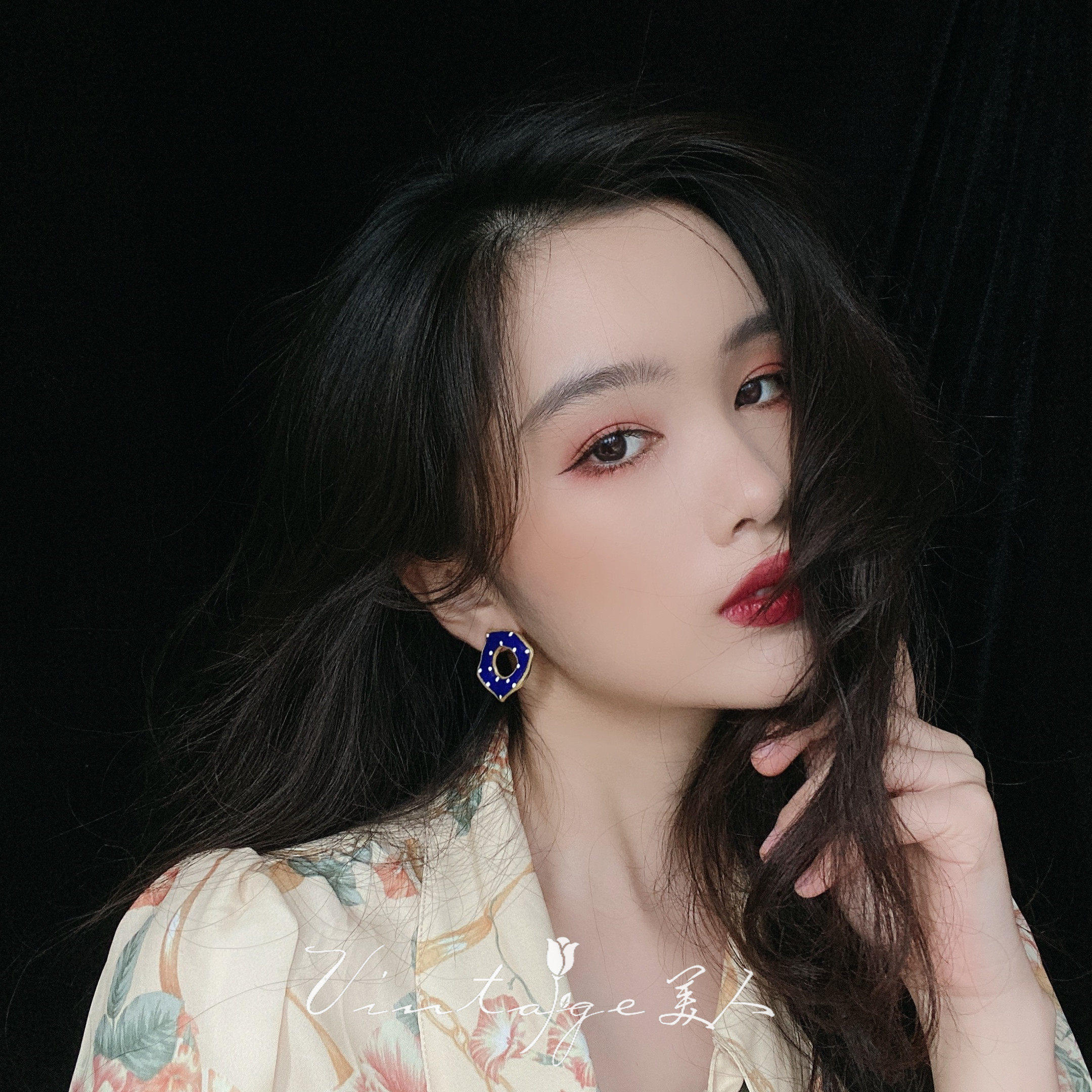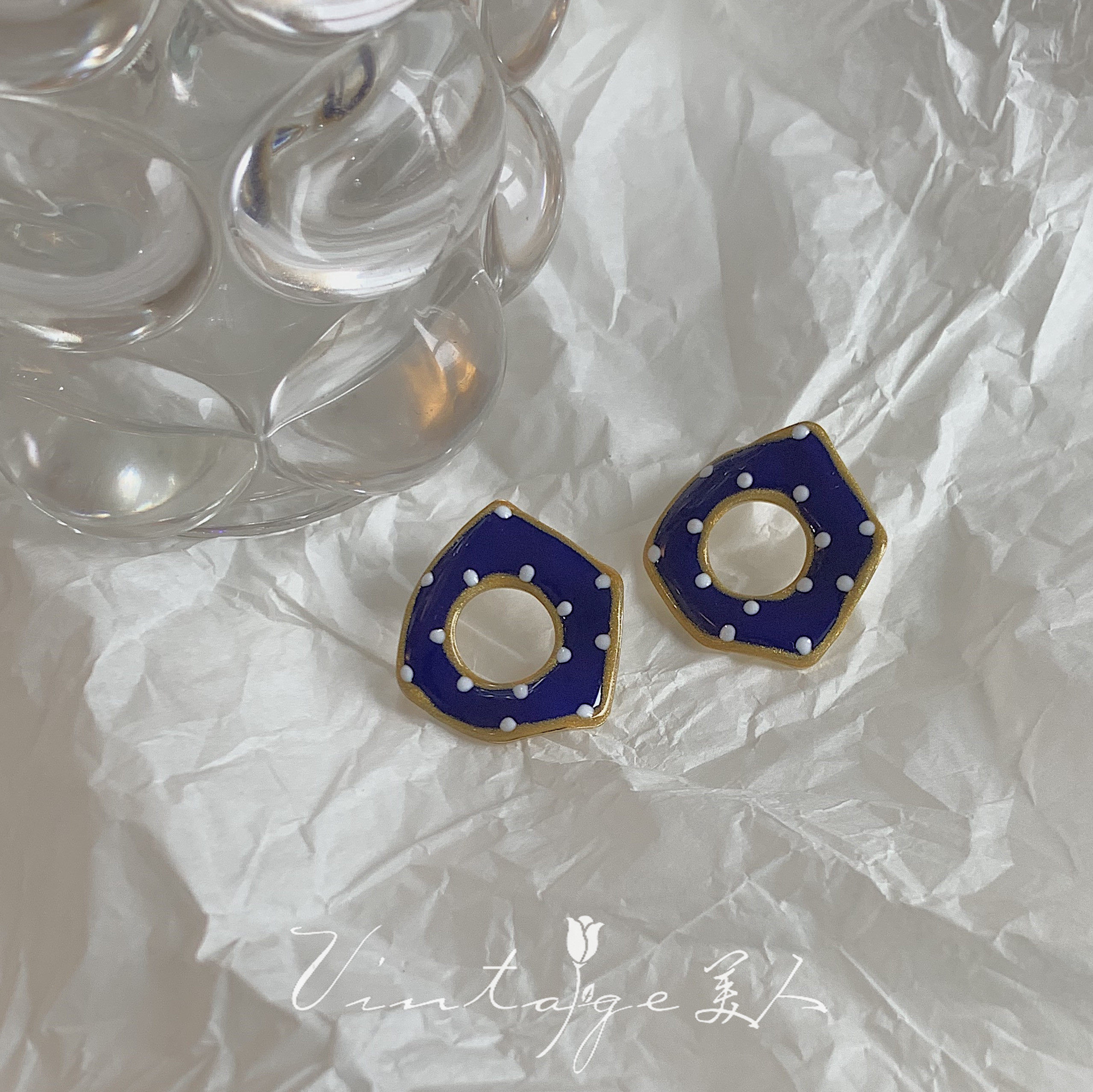 "Chrislan Blue" Ins Boomeri Style Trendy Superior Elegant Small Crowdsourced Blue Polo Dot Ear Clip Ear Clip
