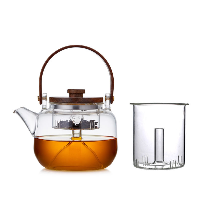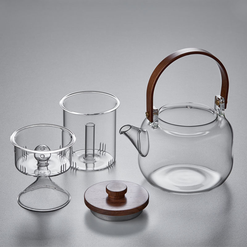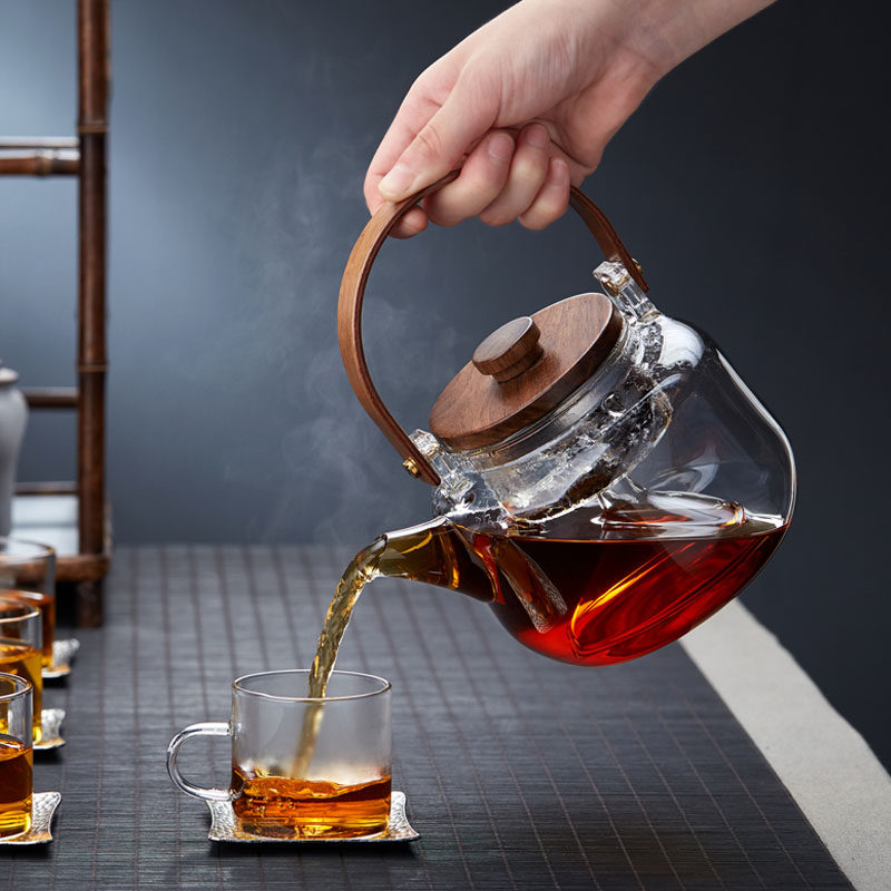 High Boron Silicon Glass Pot Lifting Beam Cooking Teapot Wood Lid Tea Cooking Dual-use Pot Steaming Tea Machine One Pot of Biliary Heating