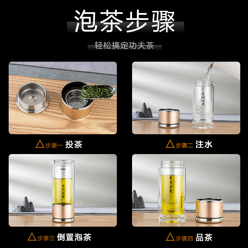 Yatai double-layer glass tea separation Tea Cup for men and women high-end tea cup portable cup portable water Cup
