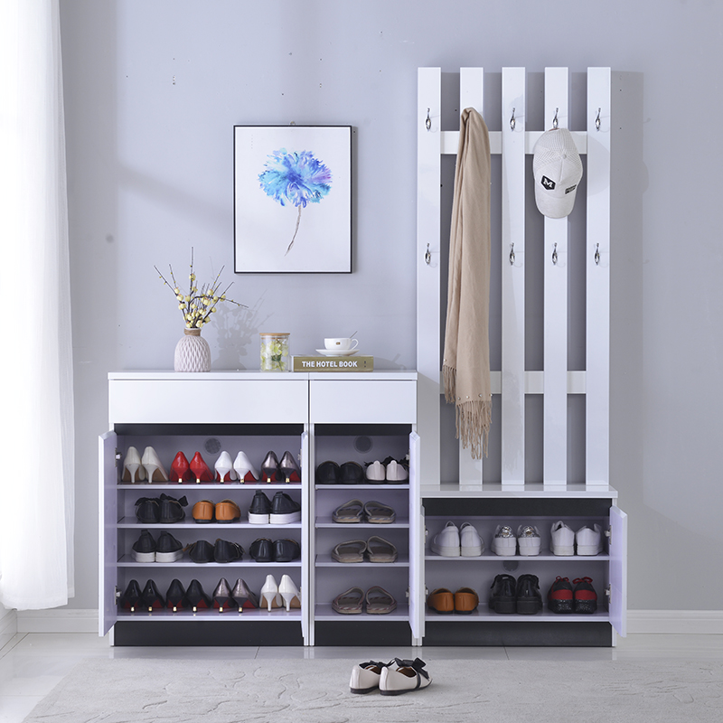 Modern simple large capacity foyer entrance shoe cabinet hanging coat rack combination change shoe stool storage household door paint