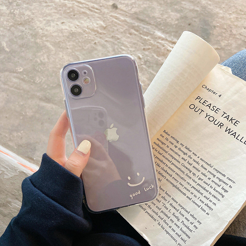 The Transparent Smile X XS XR is suitable for Apple 12 11 Pro Max mobile phone case iPhone 13 8plus silicone gel anti-fall simply new all-inclusion camera soft