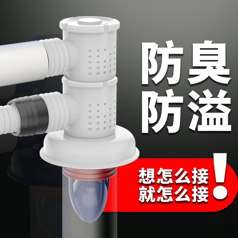 Wankang washing machine dryer floor drain joint three-way sewer deodorant anti-overflow drain pipe sewer artifact